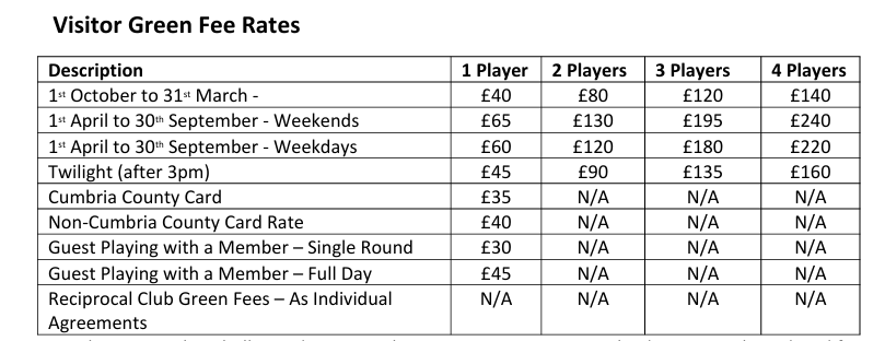 For group discounts and availbility please contact 01768 891919 opt 1 or email: directorofgolf@penrithgolfclub.co.uk